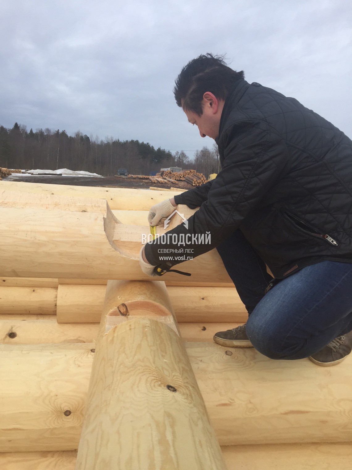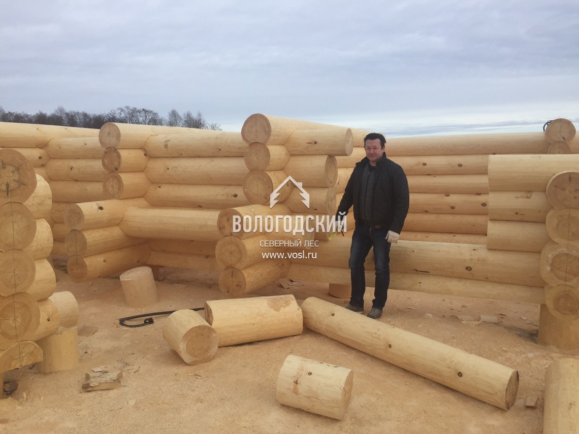 Заказчик бани в д. Терехово, Московская область, приехал проверить качество на этапе рубки и остался очень доволен. Мы - тоже.