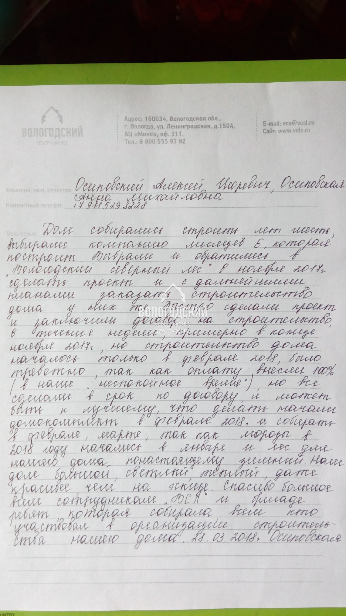 Отзыв наших Заказчиков, чей дом мы построили в п. Можайское, Вологодской области.