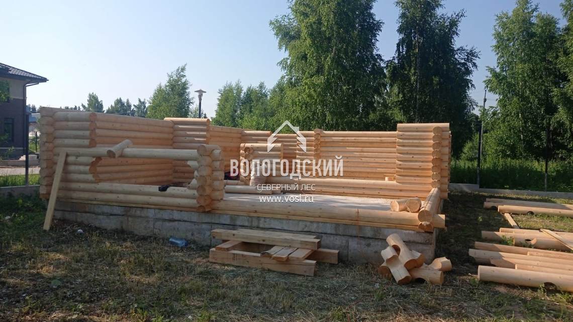 Приступили к сборке бани из оцилиндрованного бревна в д. Апрелевка, Московской области